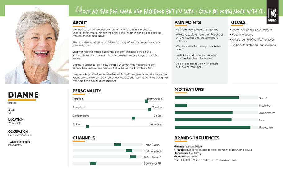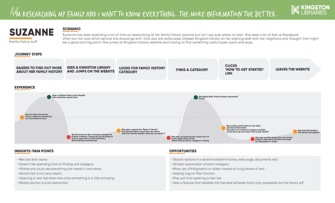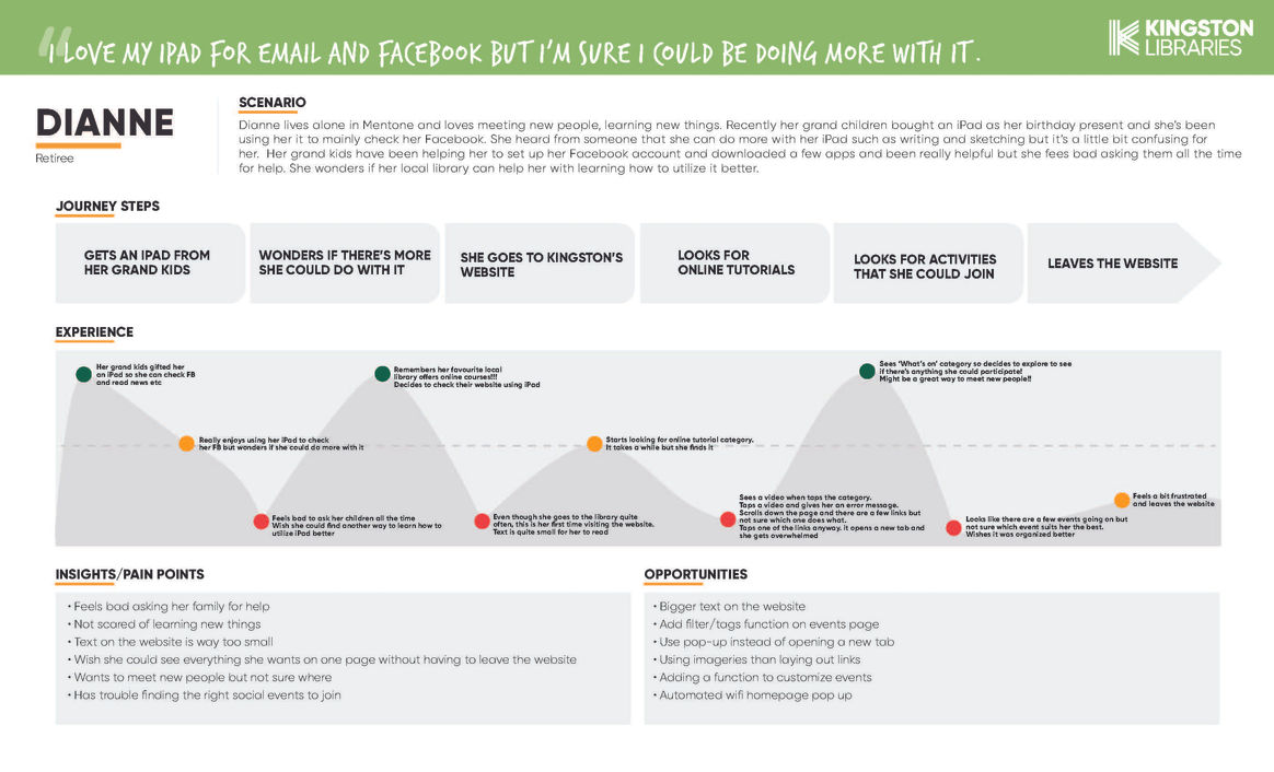 When creating the different personas, it was important to research the current Kingston population. Through the help of the client and our own research we found that