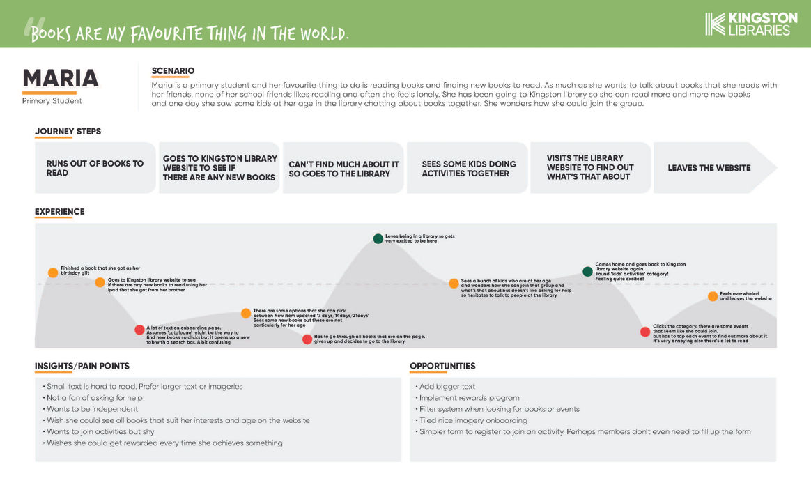 From these user journeys we realised that we needed a welcoming platform to all current and potential customers of Kingston Libraries. A one fit all solution, where the website will have everyone's need. The site will entice new members and also satisfy existing members.