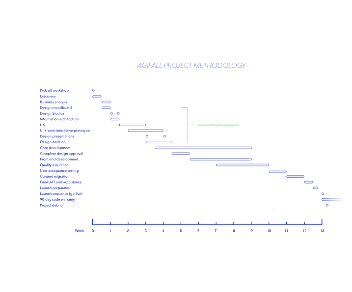 Newpath Web operates under an Agifall methodology (waterfall methodology with Agile principles) with human centred design thinking applied. We would start with discovery process and from there a document is created that focuses on the vision and scope. The result of this combined method is that the timeline speeds up considerably and errors are detected sooner and sent back for correction while keeping our core objectives and vision at bay.