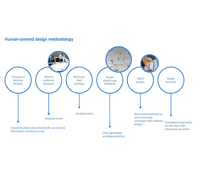 We went over the personas with the team, and then had discovery meetings where we brainstormed the user journeys from these users. We wanted to create as much insights from our discovery work indicated many areas where our web-based solution could help to improve the day-to-day lives of personas.