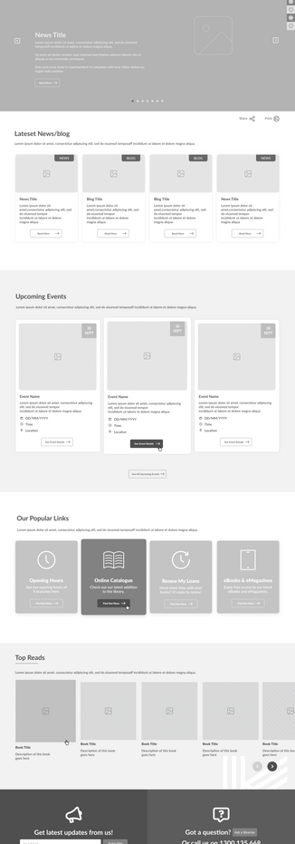 Kingston Libraries is committed to responding to the social needs of a diverse community across all life-stages, and backgrounds. Promoting social inclusion, life-long learning, and supporting the community to be meaningfully engaged. We tried creating the UI to reflect this. Designing UI cards that have clear call to actions, modules that promote on-going engagement, and removing any fluff that would distract from user goals. Going forward only testing will tell if we have achieved this.