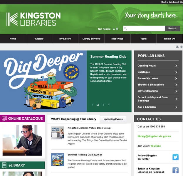 Problem statement: The Kingston community was not engaging, or connecting with the resources they had. Our existing website was static, inflexible, and non-responsive. It was originally built as a small part of a broader council website development project and there was little understanding of the complexity of the library services. Resulting in a poor user experience for many users. Furthermore, as the website is currently built on a proprietary CMS, template changes are costly to implement. This has resulted in a website that has been unable to evolve to meet the needs of our community.
