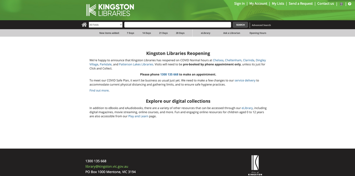 The customer base is broad. The library serves all who live, work, or play in the City of Kingston. In addition, Kingston Libraries memberships are free to anyone who is a resident of Victoria, with other membership options available to interstate and international visitors.